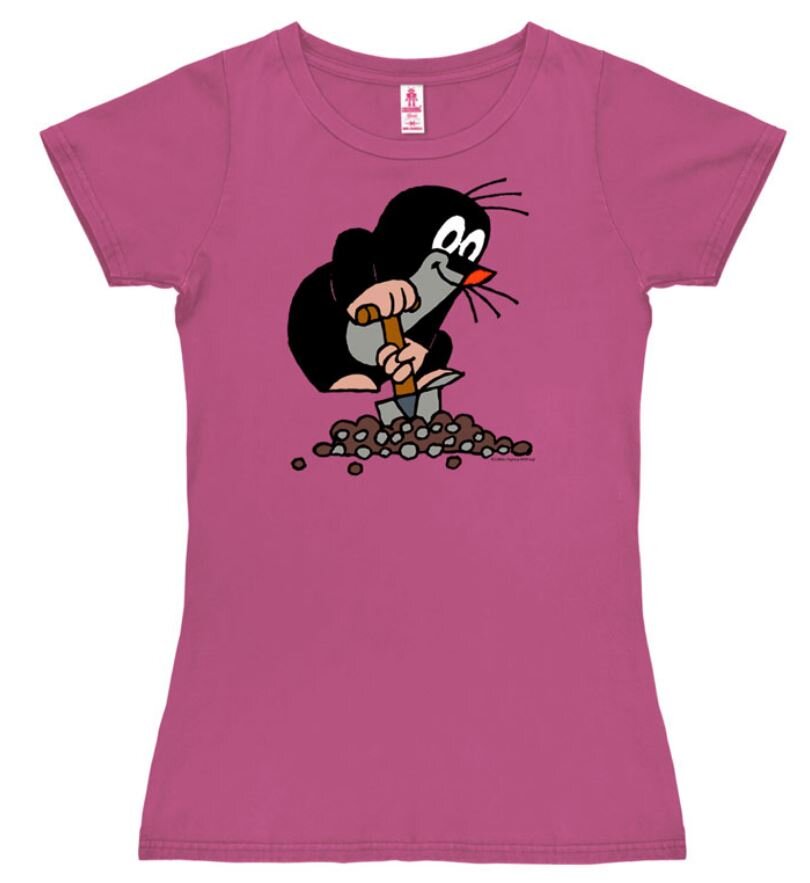 Dámské tričko s krátkým rukávem v růžové barvě s motivem Krtečka, který kope do země. Přiléhavý střih, příjemný bavlněný materiál, vhodné na volný čas i každodenní nošení.