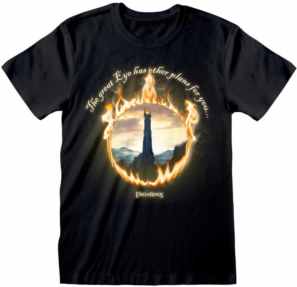 Černé pánské tričko s potiskem Lord of the Rings, motivem Saurons Eye (Sauronovo oko) a nápisem The great Eye has other plans for you...