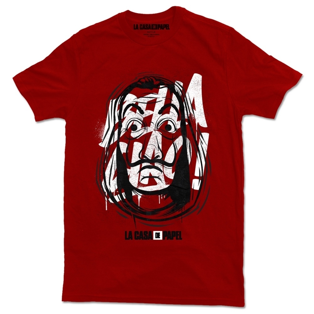 Oficiální tričko z katalogu dárkových, sběratelských a upomínkových produktů s logem a grafikou akčního a krimi TV seriálu La Casa De Papel (Papírový dům).