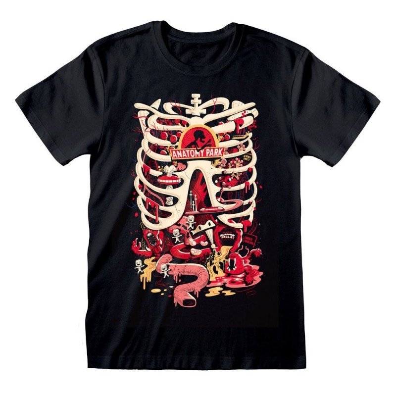 Černé pánské tričko s krátkým rukávem a grafikou Anatomy Park, z animovaného seriálu Rick and Morty.