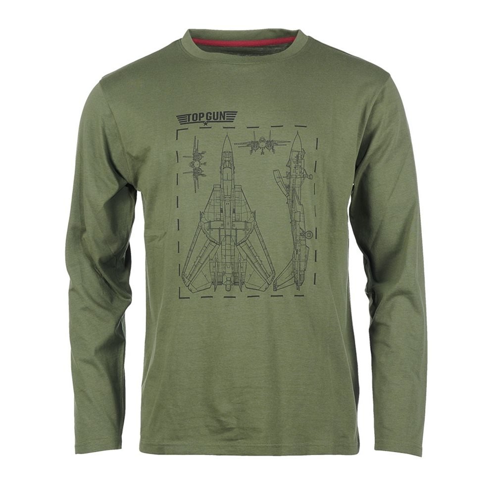 Příjemně střižené bavlněné triko od značky MIL-TEC s dlouhým rukávem a motivem TOP GUN na hrudníku.