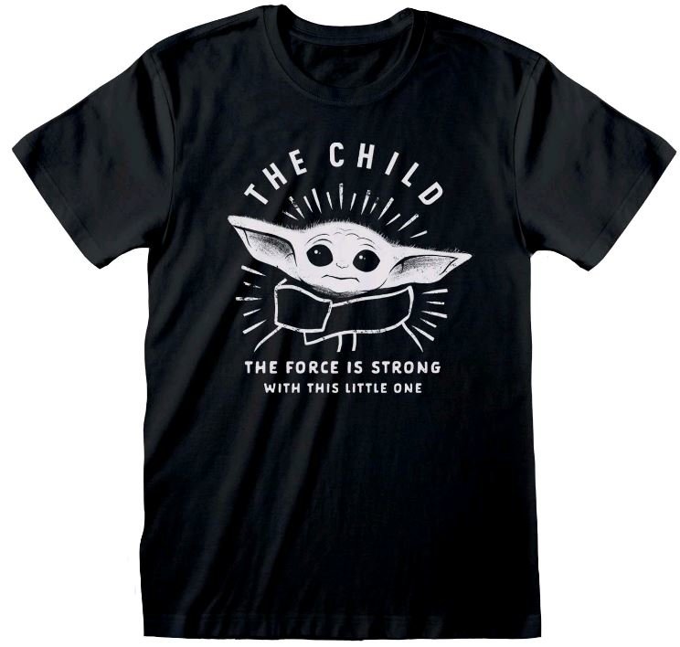 Černé pánské tričko s krátkým rukávem a bílým potiskem Baby Yody, ze seriálu Star Wars - The Mandalorian.