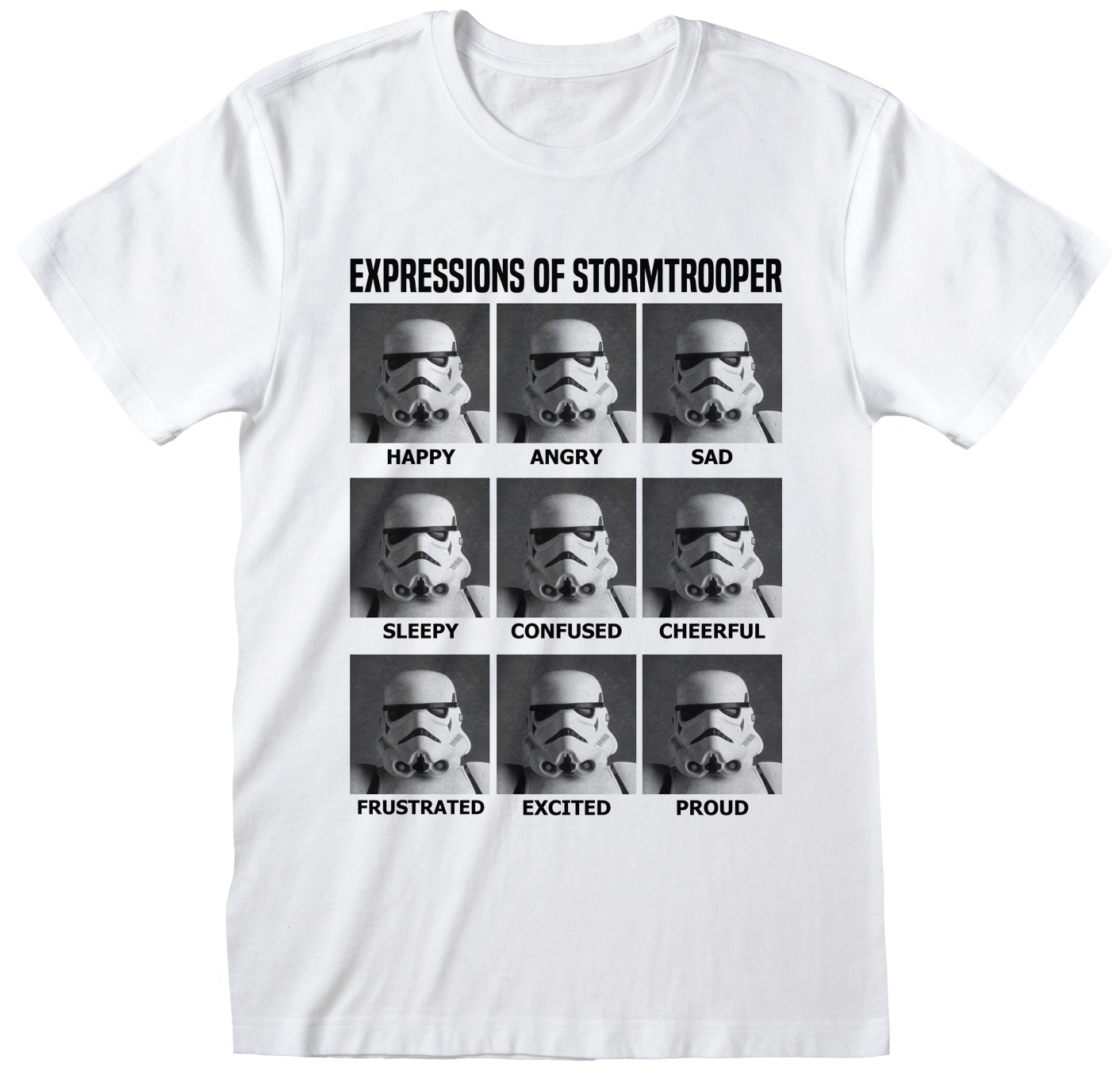 Bílé pánské tričko s motivem Expressions of Stormtrooper ze sci-fi ságy Star Wars.