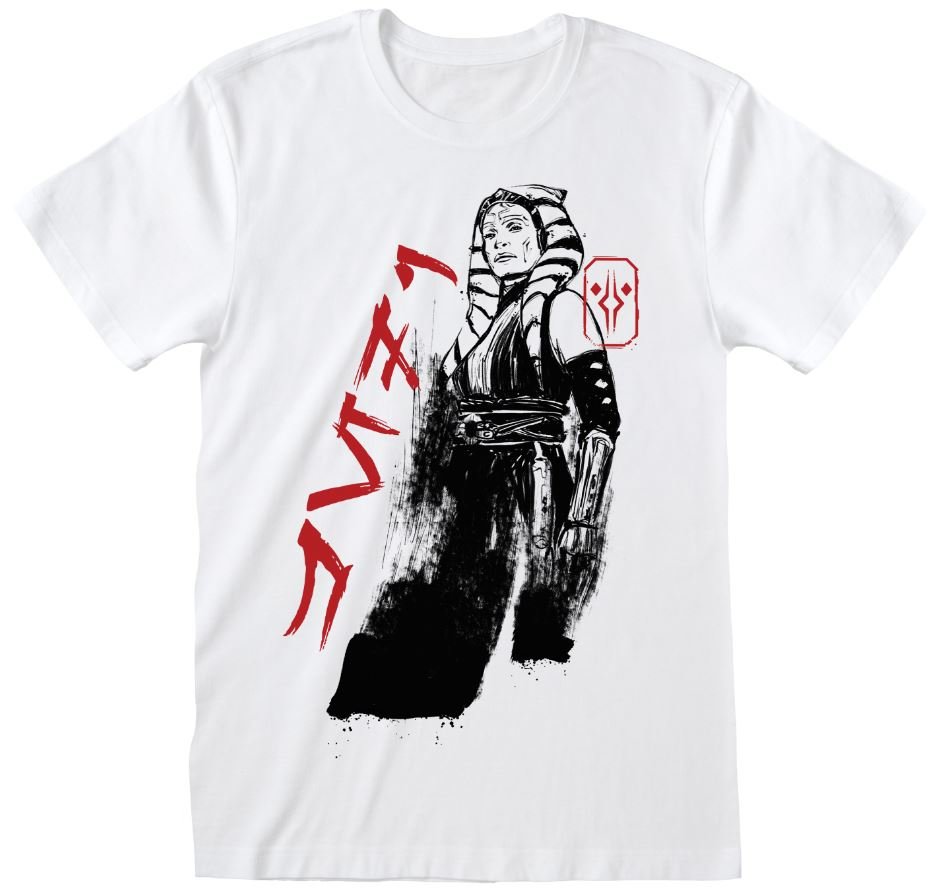 Atraktivní bílé pánské tričko s grafikou postavy Ahsoky v textu ze slavné filmové ságy Star Wars (Hvězdné války). Tričko je vhodným doplňkem každého fanouška.