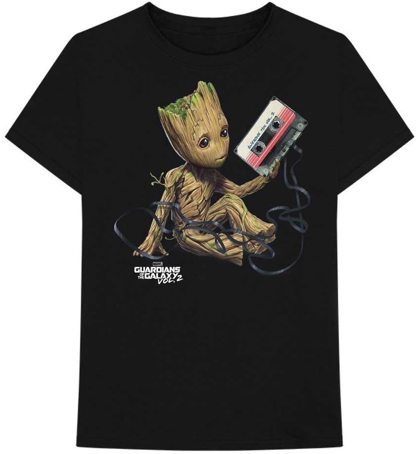 Atraktivní černé tričko vyvedené v grafice postavy Groota z akčního filmu Strážci Galaxie Vol. 2. S tímto tričkem si vychutná starý i nový díl svého oblíbeného filmu každý menší i větší fanoušek.