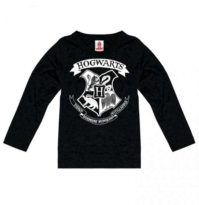 Dětské tričko Harry Potter s dlouhým rukávem: Erb Bradavic - Hogwarts Logo (výška 104 cm) černá bavlna