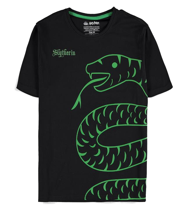 Černé dámské triko s krátkým rukávem a motivem hada, jako znak školní koleje Zmijozel.