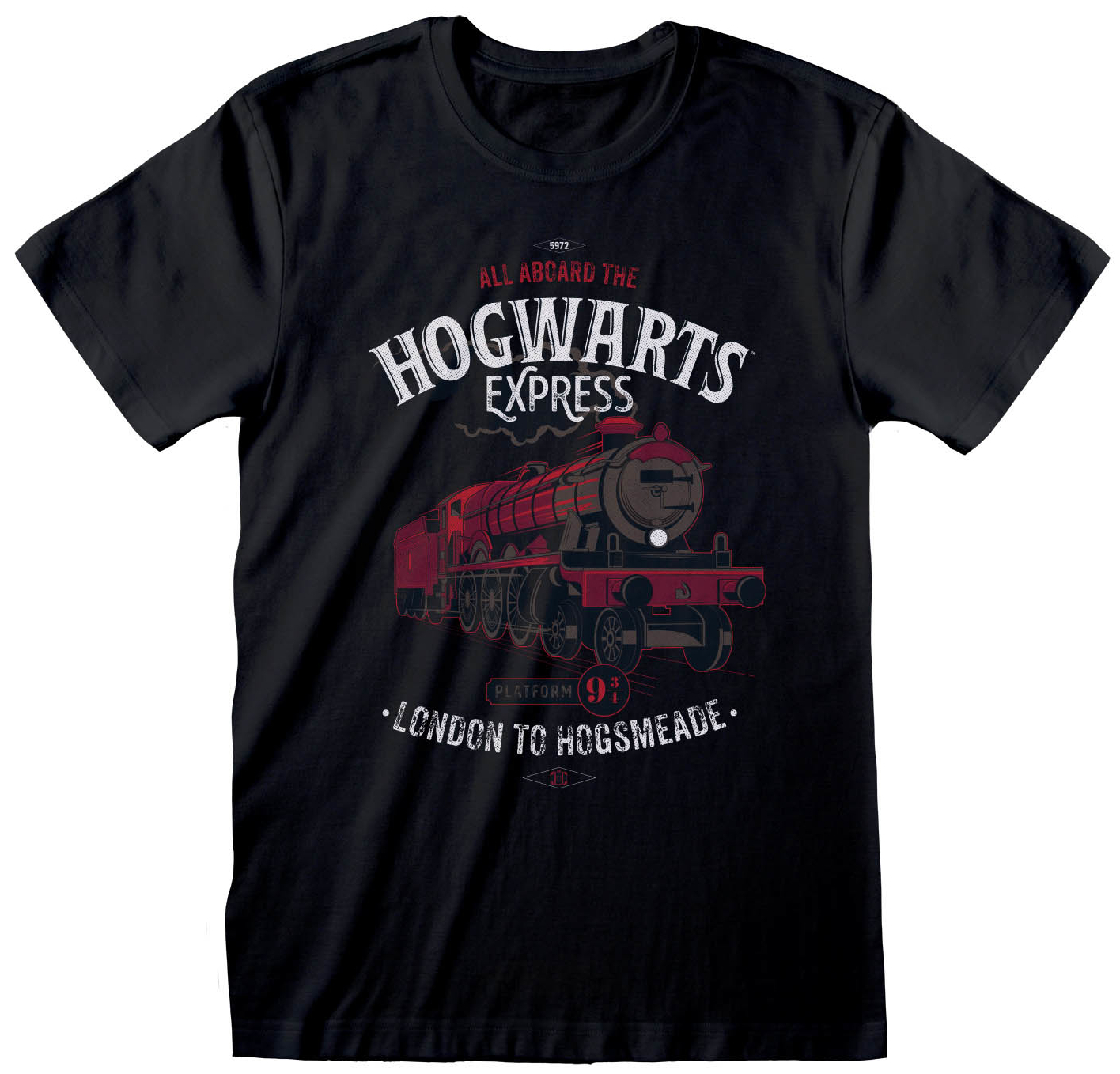 Černé pánské tričko vyvedené v motivu bradavického expressu.