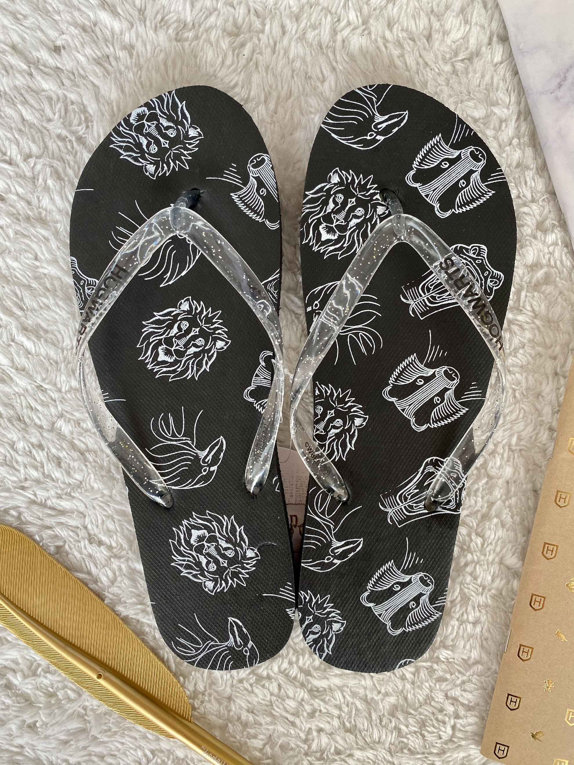 Gumové dámské žabky s průhlednými pásky a s motivy čtyř kolejí.