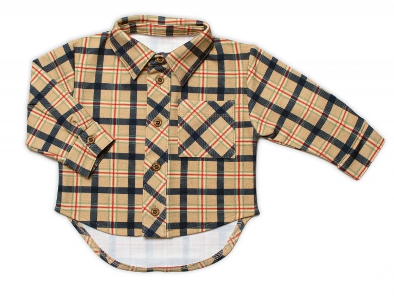Dětská košile MROFI dl. rukáv s prodlouženým zadním dílem, Kuba - béžová, vel. 92; 92 (18-24m)