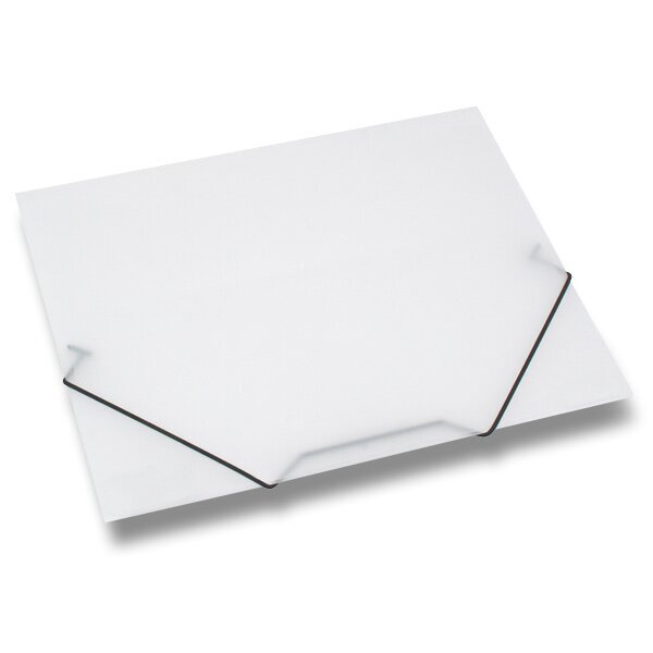 3chlopňové spisové desky s uzavírací gumičkou. Vyrobené z pevného transparentního polypropylenu tloušťky 400 mikronů. Na dokumenty A4.