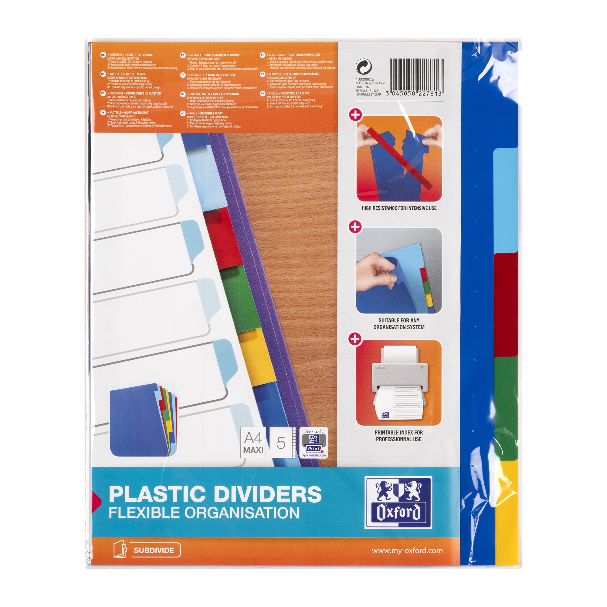Vyrobeno z barevného, pevného a pružného PP. Univerzální perforace, 5 distančních vložek. Tmavě a světle modrá, červená, zelená, žlutá