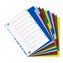 Vyrobeno z barevného, pevného a pružného PP. Univerzální perforace, 10 distančních vložek 2x - tm, sv mod, červ, zel, žl