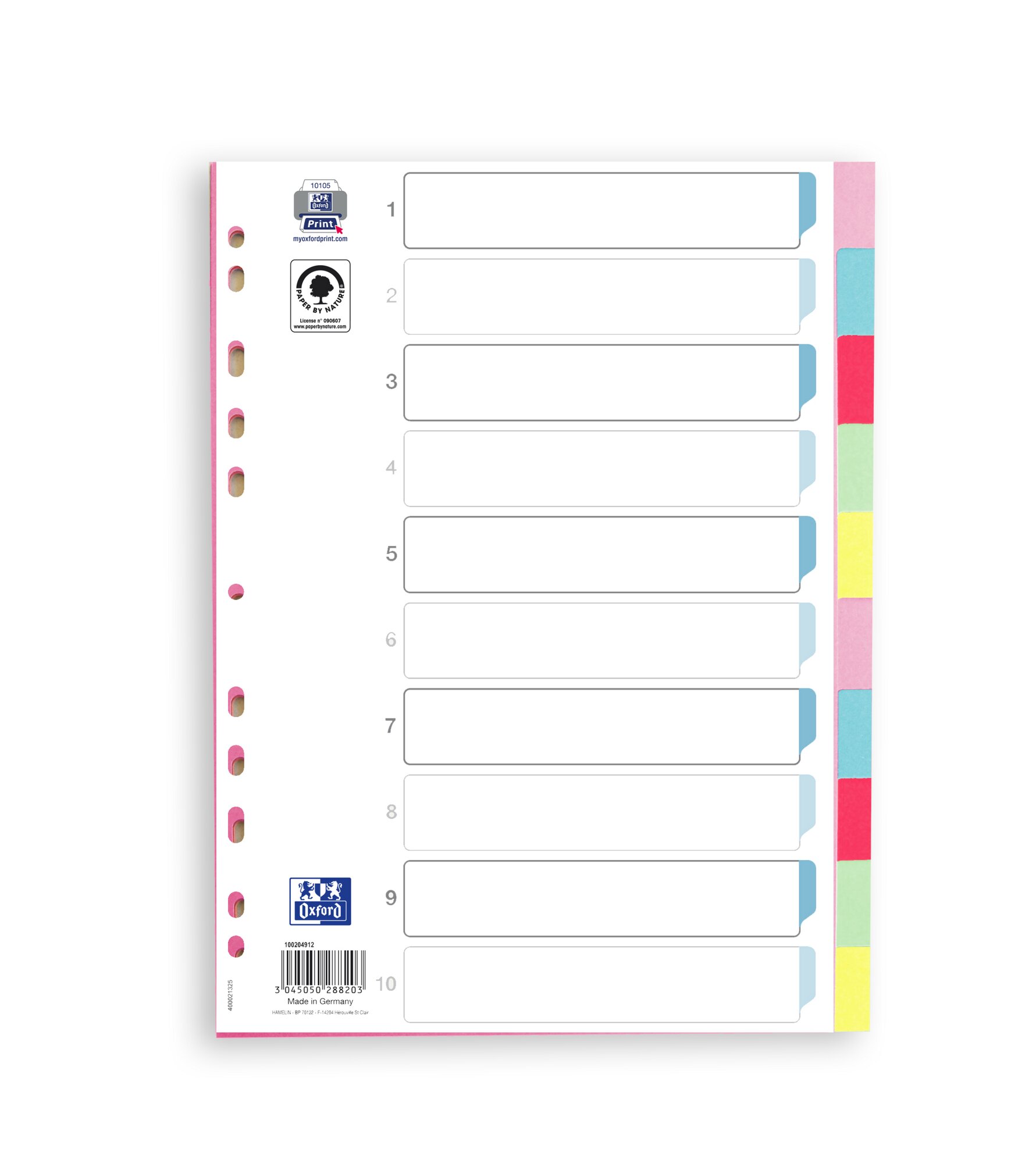 Univerzální otvory rozřaďovače jsou kompatibilní s většinou archivních systémů, což znamená, že je můžete bez problémů používat ve vašich stávajících pořadačích nebo deskách. Součástí balení je také tištěný informační list, který vám pomůže s organizací a uspořádáním dokumentů.