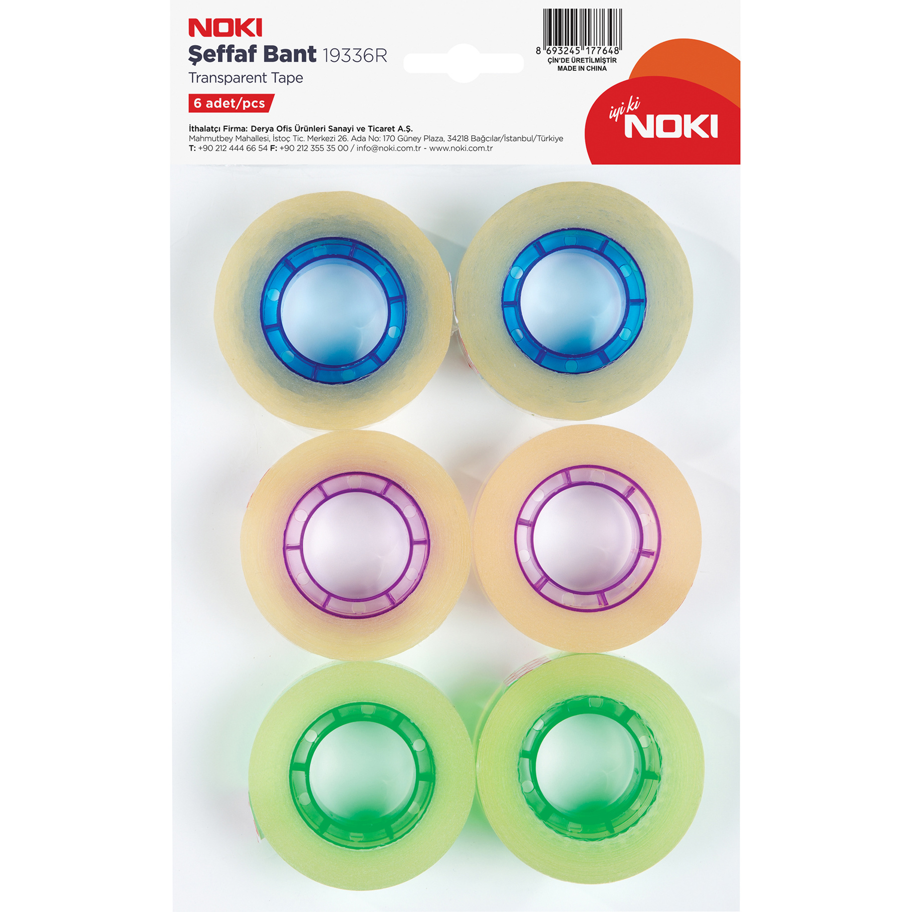 Noki, Lepicí páska s barevným středem, 19mm x 33m, 6 ks, blistr