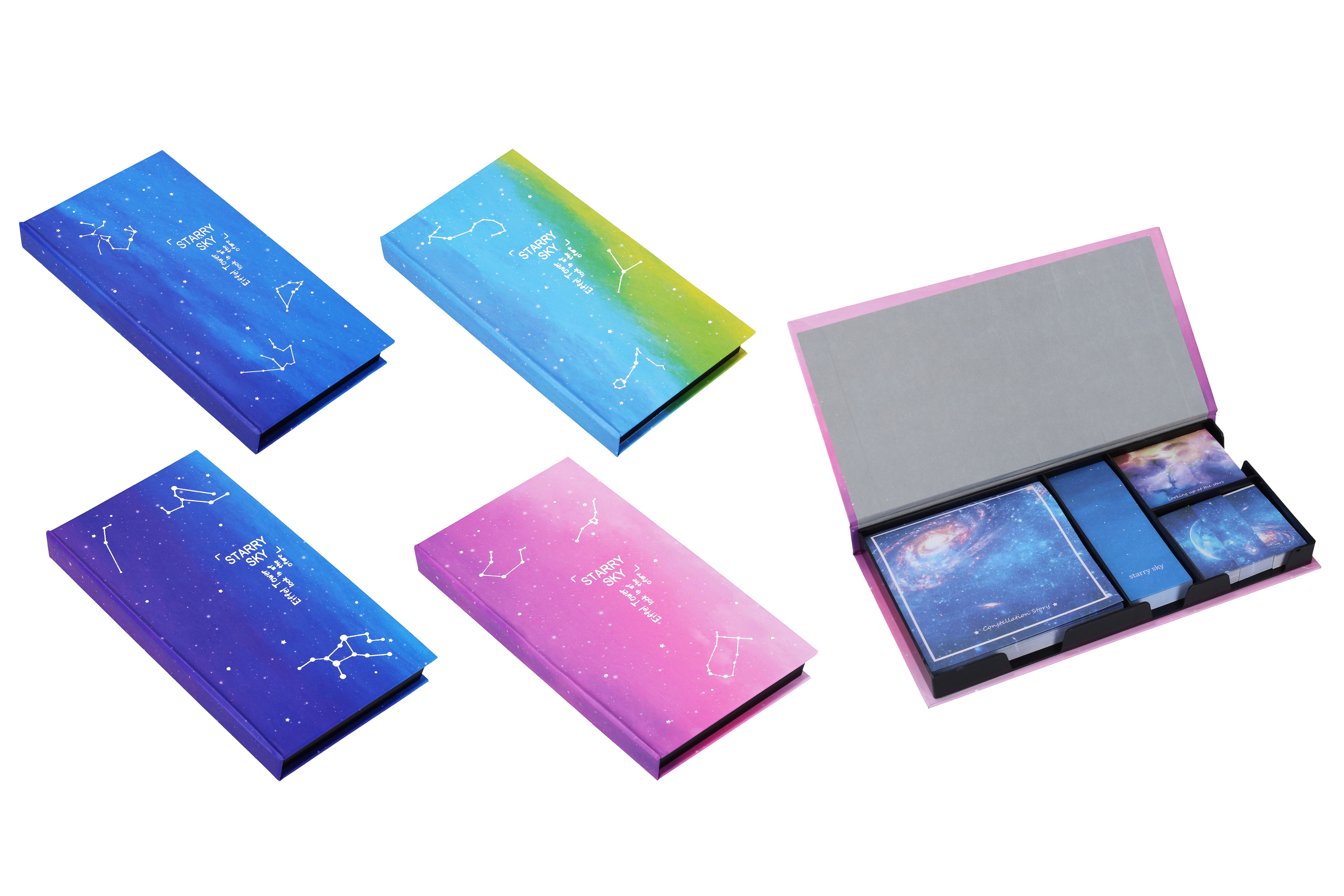 Sada samolepicích bloků. Dohromady 320 stran. 4 různé druhy barev v sadě. 1x samolepicí blok 9x9 cm, 80 stran 1x samolepicí blok 3x9 cm, 80 stran 1x samolepicí blok 5,5x4 cm, 81 stran 3x samolepicí blok 1,7x4,5 cm, 27 stran číst celé