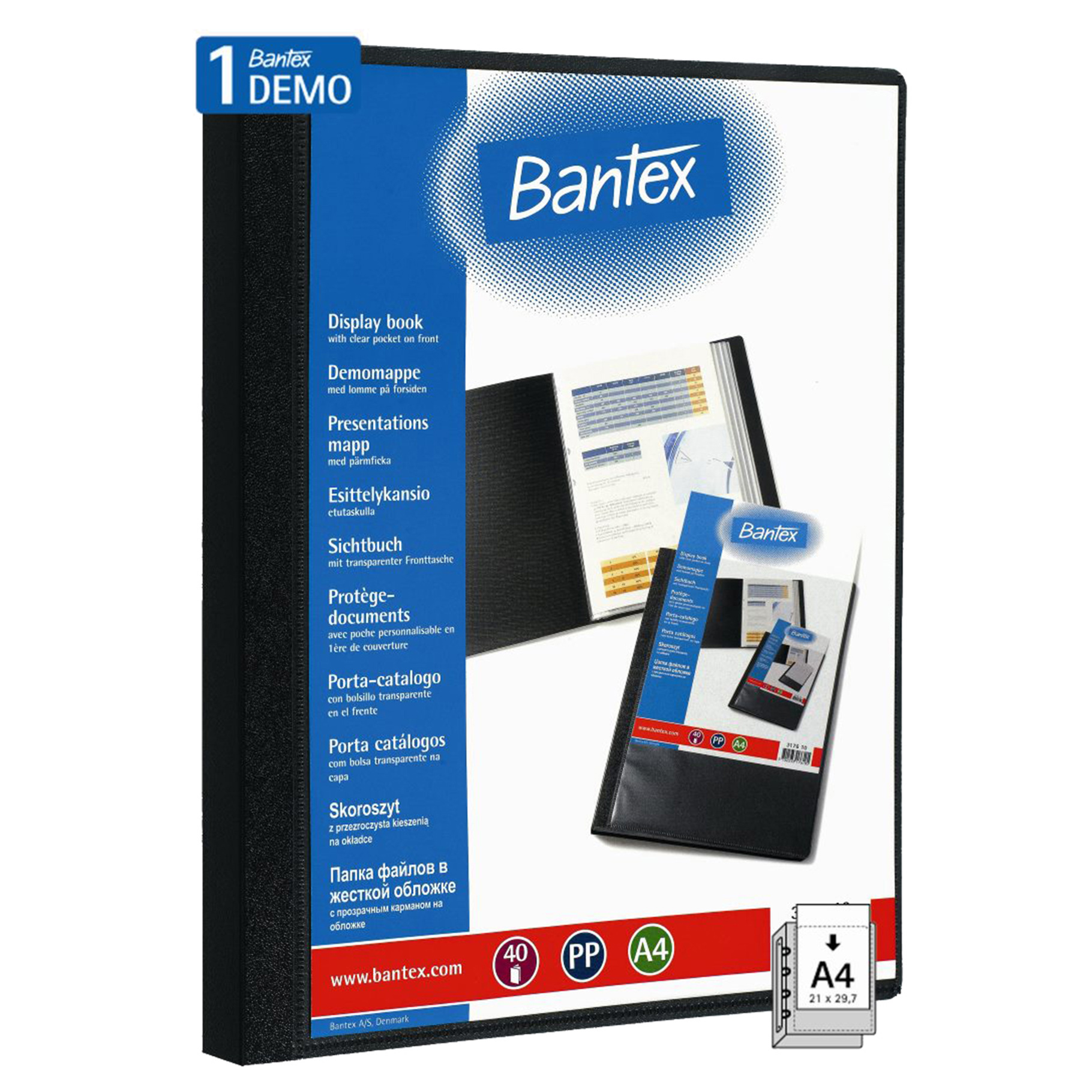 Bantex, Katalogová kniha s přední kapsou, 40 kapes, PP, A4, černá