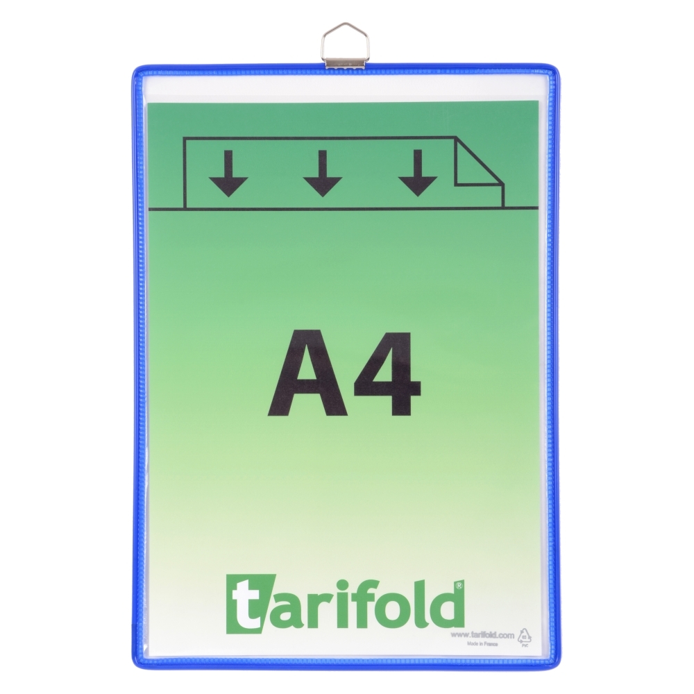 Závěsná prezentační kapsa, modrá, A4, kovový rámeček s okem na zavěšení, DJOIS