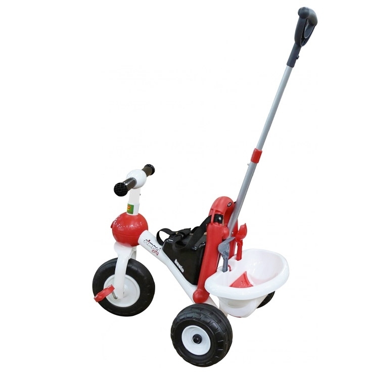 Tříkolka Basic s tyčí na tlačení umožní dítěti cítit se bezpečně. Konstrukce odrážedla je robustní, byla vypracována s přihlédnutím k fyziologii dětí. K dispozici je pohodlné sedadlo. Hračka rozvíjí koordinaci pohybů, pozornost, orientaci v prostoru. Dítě získá dovednosti jízdy. Rodiče ocení pohodlí při pohybu tříkolky: za tímto účelem je za sedadlem umístěna rukojeť.