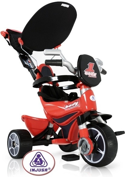 Od 24 měsíců věku dítěte lze odinstalovat vodící tyč a tříkolka může sloužit dokud z ní dítě nevyroste. Vodící tyč lze větším dětem zcela odstranit. Stříška tříkolky je polohovatelná nebo ji lze úplně odstranit. Vzadu na tříkolce je umístěn odkládací košík. Dále je tříkolka vybavena taštičkou na vodicí rukojeti.