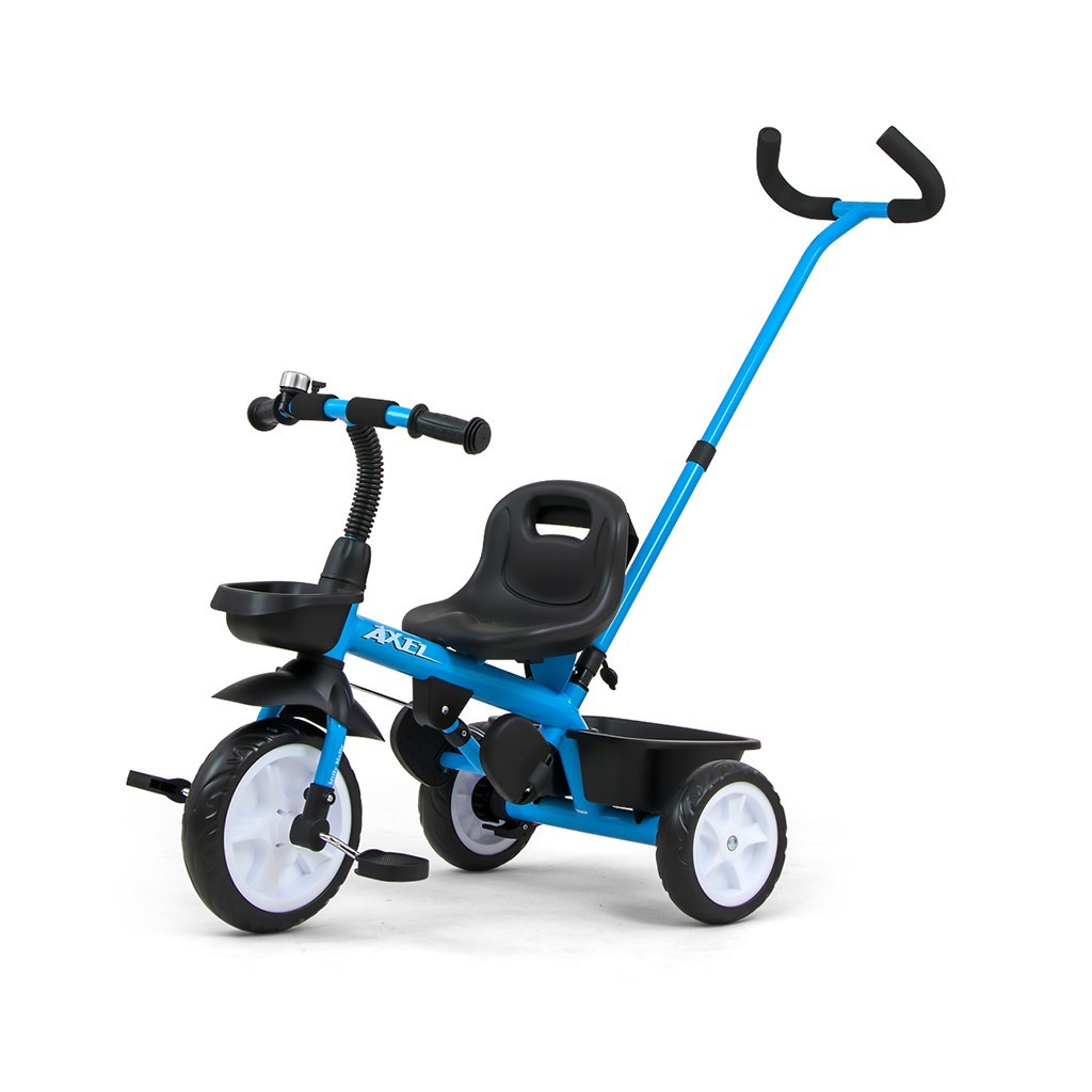 Dětská šlapací tříkolka s rukojetí Axel je určena pro děti ve věku od 1 do 3 let. Je vyrobena z kvalitních a odolných materiálů. Má pohodlné a ergonomicky tvarované sedlo, jehož vzdálenost k řídítkům lze snadno nastavit a tím přizpůsobit tříkolku věku a výšce dítěte. Tříkolka patří k produktům skupiny GROW UP, tedy roste s dítětem. Na předním kole lze uvolnit náhon na pedály a pomocí vodící tyče tlačit malého závodníka, když mu dojdou síly. Široká kola vyrobená z tvrzené pěny EVA, zaručí pohodlí a odolnost na každém povrchu. Do dvou praktických košíků si váš malý závodník naskládá všechny potřebné hračky a může vyrazit vstříc dobrodružství. Kombinace kovové konstrukce a součástek vyrobených z nejkvalitnějších materiálů zaručuje odolnost za všech podmínek. Pro maximální bezpečí dítěte má tříkolka tříbodové bezpečnostní pásy.