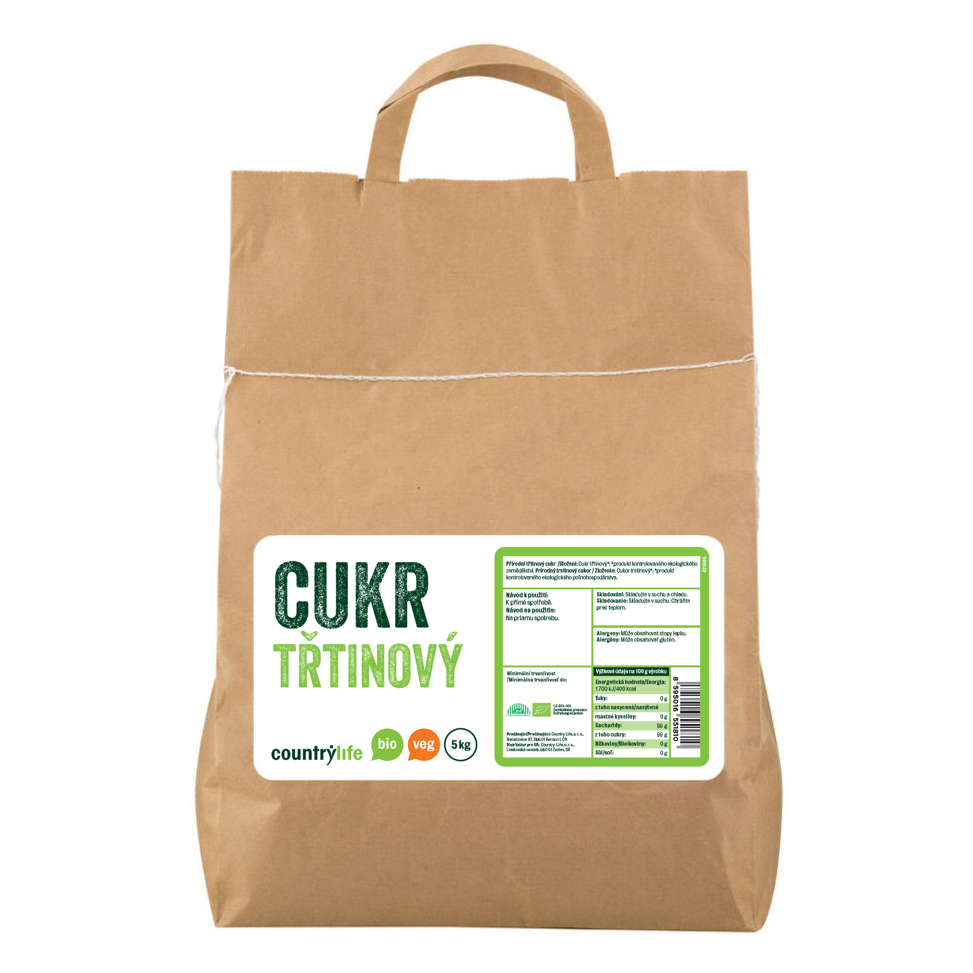Cukr třtinový 5 kg BIO COUNTRY LIFE