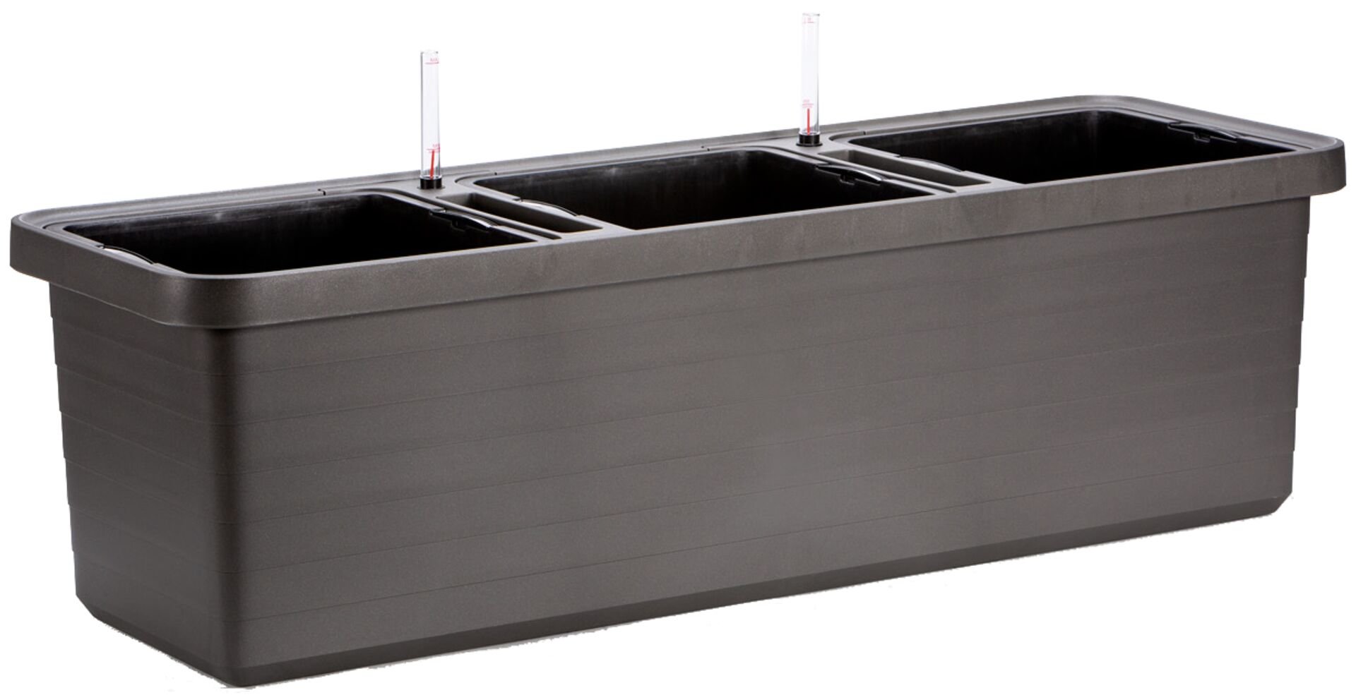 Popis: Velkoobjemový samozavlažovací truhlík v novém designu. Uvnitř jsou tři samostatné nádoby, každá s otvorem pro pevné uchycení opory pro rostliny. O rostliny je tak skvěle postaráno. Truhlík obsahuje: 3 samostatné nádoby, 3 knoty a 2 hladinoměry. Součástí jsou i kolečka pro lepší manipulaci s truhlíkem.