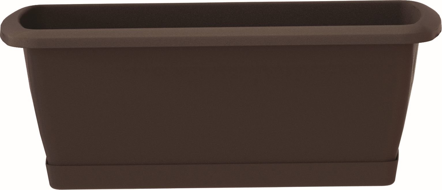 Plastový truhlík s miskou RESPANA SET v hnědé barvě pro celoroční použití v interiéru i exteriéru. Je snadno omyvatelný. Odolný vůči mrazu a povětrnostním vlivům. Materiál - plast. Rozměry - délka 50 cm, šířka 18,4 cm, výška 14,5 cm.