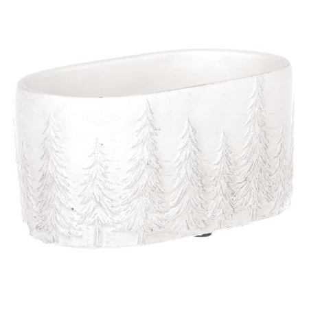 Obal betonový - truhlík, motiv stromku, bílo-stříbrné.