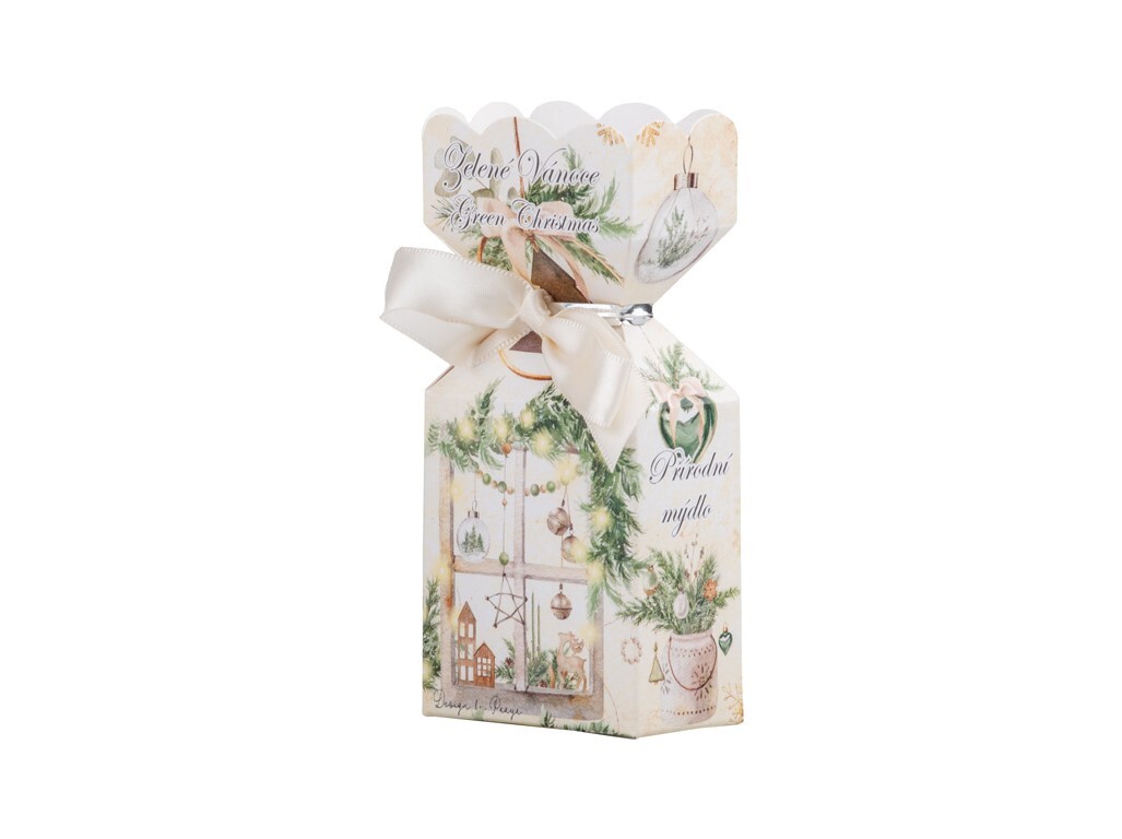 Mýdlo 90g Zelené Vánoce v krabičce, zelená, krémová
