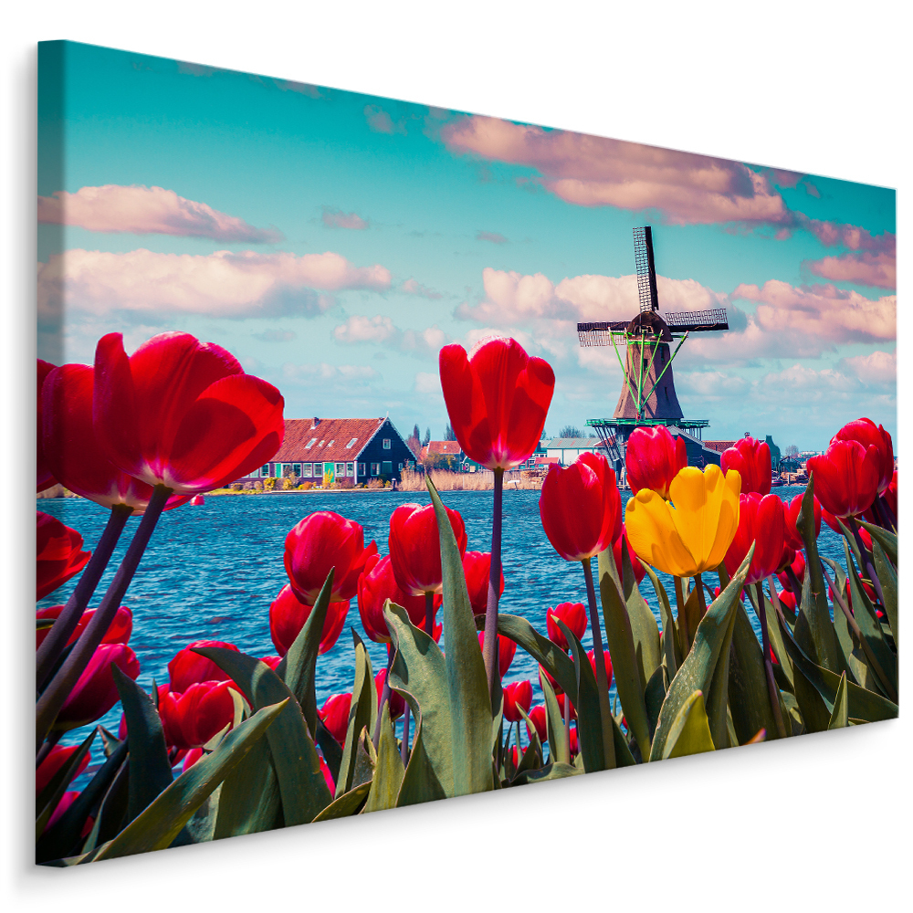 Plátno Tulipány Na Pozadí Holandského Větrného Mlýna