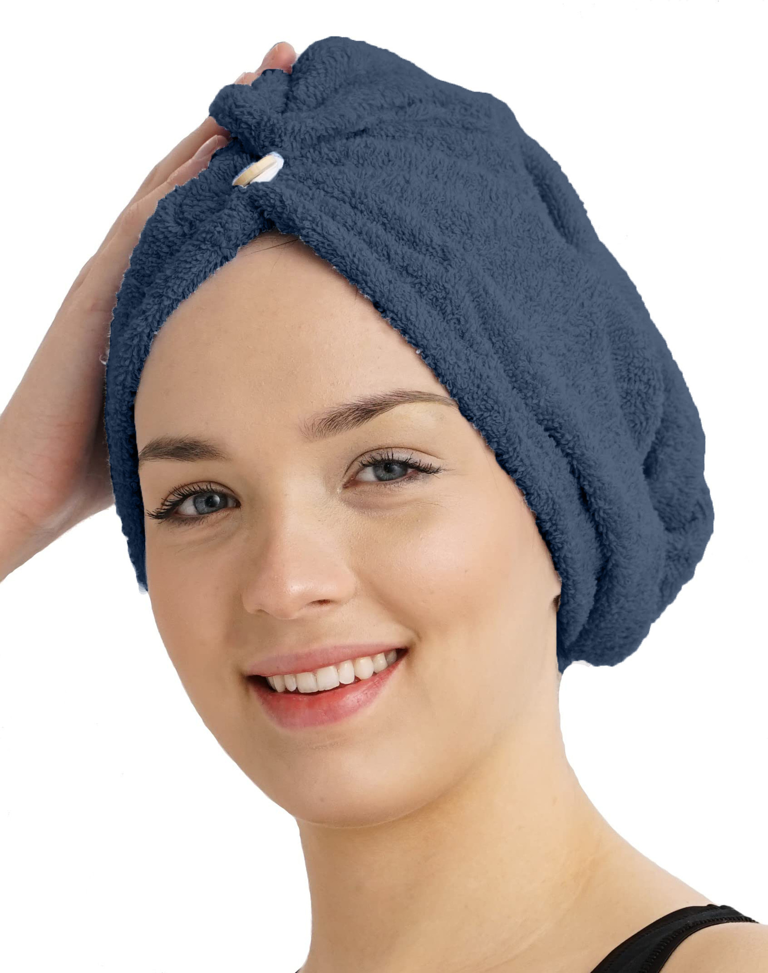 Rychleschnoucí froté turban na vlasy, tmavě modrý
