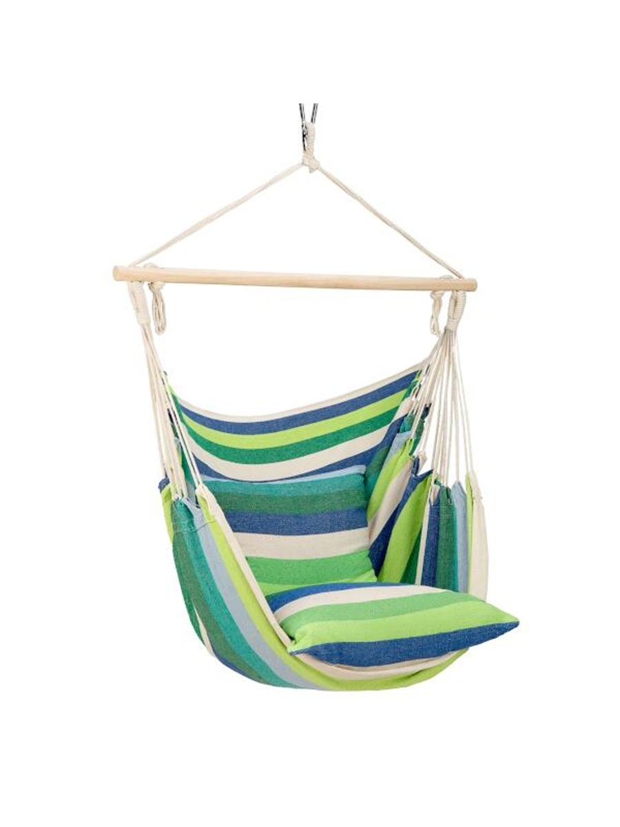 Jednoduše ho rozbalíte a zavěsíte ve vhodné výšce, a už si můžete užívat odpočinek například s oblíbenou knihou nebo posezením s přáteli. Křeslo je navíc vybaveno dvěma měkkými polštáři, které zvýrazňují komfort a podporují relaxaci.