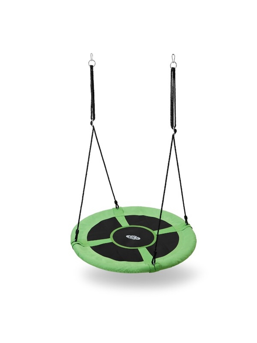 Každé dítě má rádo houpání a k tomu se ideálně hodí naše čapí hnízda, nezáleží, zda si houpačku umístíte na zahradu, terasu, balkón, nebo do dětského pokoje. Vždy budete mít jistotu, že Váš junior bude houpáním trávit spoustu času. Udržování houpačky v pohybu navíc rozvíjí systém pro rovnováhu a do pohybu zapojuje většinu těla. Rám o průměru 100 centimetrů je vyroben z ocelové kulatiny o průměru 25 milimetrů, na které je pro maximální bezpečí nalepena vysoká vrstva PE pěny. Potah modelu NB5031 je vyroben z kombinace polypropylenu a tkaniny Oxford 600D, která je maximálně odolná vůči poškození a povětrnostím vlivům jako je déšť a sníh, hnízdo tak nemusíte schovávat když zrovna začne pršet. Nosná, polyetylénová lanka mají průměr 10 milimetrů a délku 180 cm. Když tyto vlastnosti zkombinujeme tak získáme prostornou houpačku s nosností 150 kilogramů, na které se vyřádí i více dětí najednou. Karabiny nejsou součástí dodávky.