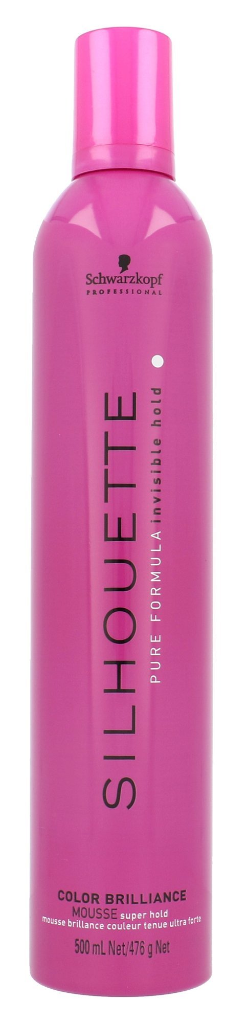 **Schwarzkopf Silhouette Color Brilliance Mousse Super Hold** silně fixační pěna pro zářivou barvu vlasů. Silně fixační pěna, vhodná pro všechny typy barvených vlasů. Tato unikátní pěna dodává vlasům silnou fixaci, nezatěžuje je, podporuje jejich oslnivý lesk a vitalitu, dodává jim maximální objem. Výsledkem je perfektně držící dlouhotrvající účes plný lesku a objemu, sytost a zářivost Vaší barvy je posílena. **Použití**: Aplikujte do vlhkých vlasů, upravte dle potřeby.