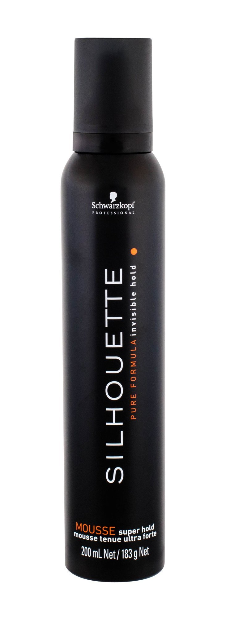 **Schwarzkopf Silhouette Super Hold Mousse** super silná pěnová fixace vlasů. Silně fixační pěna, která je vhodná pro všechny typy vlasů. Dodává vlasům silnou fixaci, nezatěžuje je, podporuje jejich oslnivý lesk a vitalitu, dodává jim maximální objem. Výsledkem je perfektně držící dlouhotrvající účes plný lesku a objemu. **Použití:** Aplikujte do vlhkých vlasů, upravte dle potřeby.