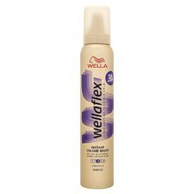 Tužidlo pro objem vlasů s extra silnou fixací **Wella Wellaflex Instant Volume Boost Mousse.** Tužidlo na vlasy poskytuje účesu extra silnou fixaci s přirozeným flexibilním vzhledem trvající až 2 dny díky technologii FlexActive. Formule Flex´Volume dodá vlasům až 2x větší objem. Rychle zasychá. Neslepuje vlasy. Snadno se vyčesává a chrání vlasové vlákno před negativním působením UV paprsků. S tužidlem na vlasy Wellaflex Instant Volume Boost bude Váš účes krásný a vlasy získají objem. **Použití:** Před použitím dobře protřepejte. Otočte nádobu směrem dolů. Nastříkejte si pěnu na dlaň o velikosti jablka. Aplikujte do délek vlhkých vlasů. Vysušte fénem nebo nechte volně proschnout.