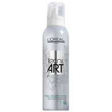 Silně fixační pěna pro objem vlasů **L´Oreal Paris Tecni Art Full Volume Extra Foam**. Stupeň fixace 5 - velmi silná fixace. Full Volume extra je ideální pro všechny účesy, které potřebují objem. Chrání vlasy před teplem fénu, urychluje vysoušení vlasů a usnadňuje konečnou úpravu. Dodává vlasům hebkost a lesk. **Použití**: Aplikujte na umyté a ručníkem vysušené vlasy. Dobře protřepejte nádobku, držte ji dnem vzhůru a vytlačte do dlaně pěnu o velikosti 1-2 mandarinek. Rozprostřete do vlasů hřebenem nebo prsty. Vlasy vyfoukejte nebo upravte pomocí prstů.