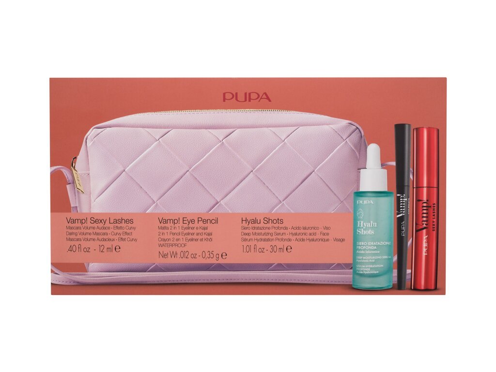 Pupa Vamp! řasenka Vamp! Sexy Lashes 12 ml + tužka na oči Vamp! 0,35 g 100 Iconic Black + pleťové sérum Hyalu Shots 30 ml + kabelka