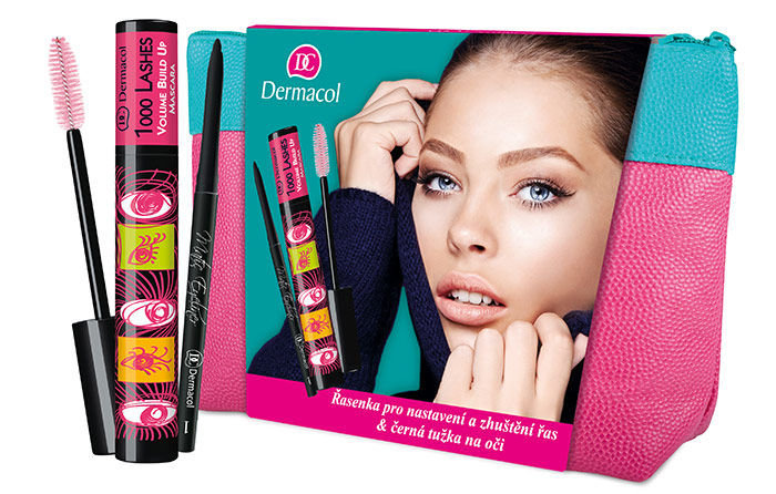 **Dermacol Mascara 1000 Lashes 7006** sada pro dokanalé oči. **Složení kazety**: **Mascara 1000 Lashes Black 12ml - Řasenka** Řasenka pro nastavení a zhuštění řas. **Poznámka**: _Vyobrazný odstín může být spíše orientační, záleží na nastavení barev Vašeho monitoru_. **Matic Eyeliner Black 0,35g - Automatická tužka na oči.** **Poznámka**: _Vyobrazný odstín může být spíše orientační, záleží na nastavení barev Vašeho monitoru_. **Bag**