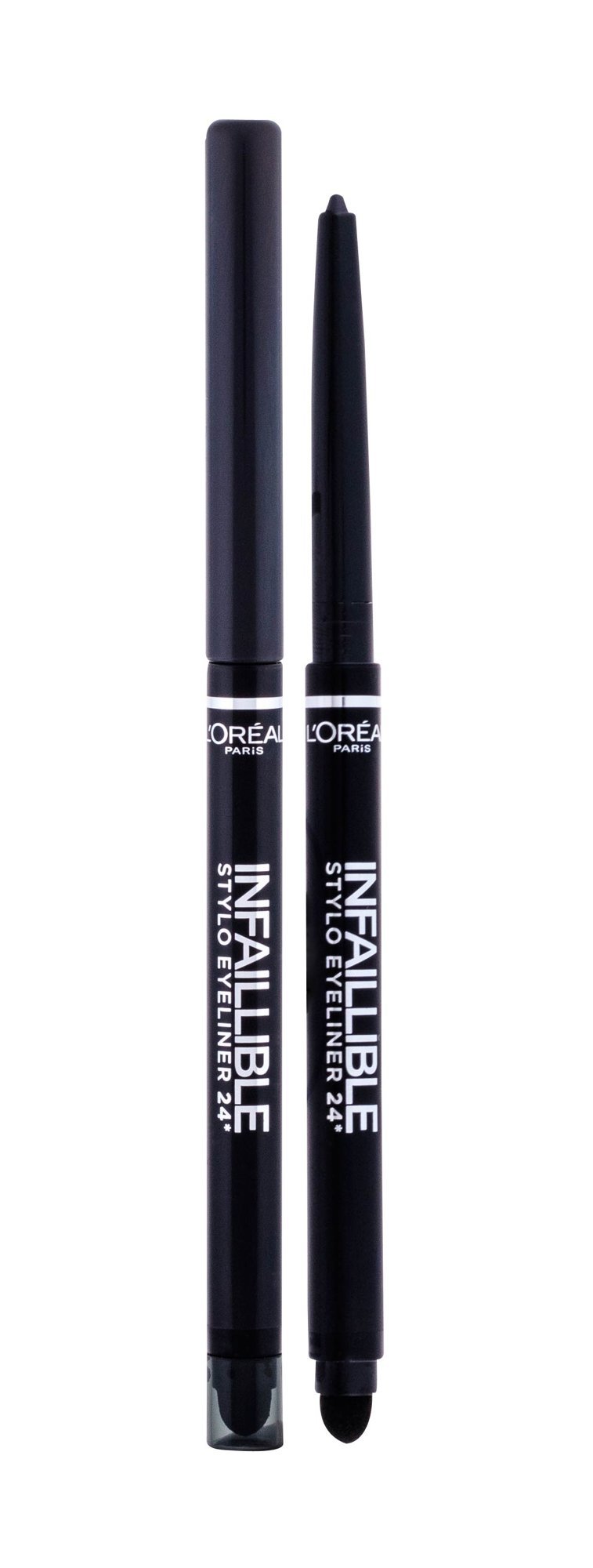 Voděodolná tužka pro kouřové líčení **L´Oréal Paris Infaillible Stylo Eyeliner 24.** Tužka má hedvábnou texturu, výborně se na oči nanáší a dobře se s ní vytváří kouřové líčení. K tomu je určený pěnový aplikátor, který je umístněný na druhém konci tužky. Líčení je trvanlivé a voděodolné. **Poznámka**: *Vyobrazený odstín může být spíše orientační, záleží na nastavení barev Vašeho monitoru.*