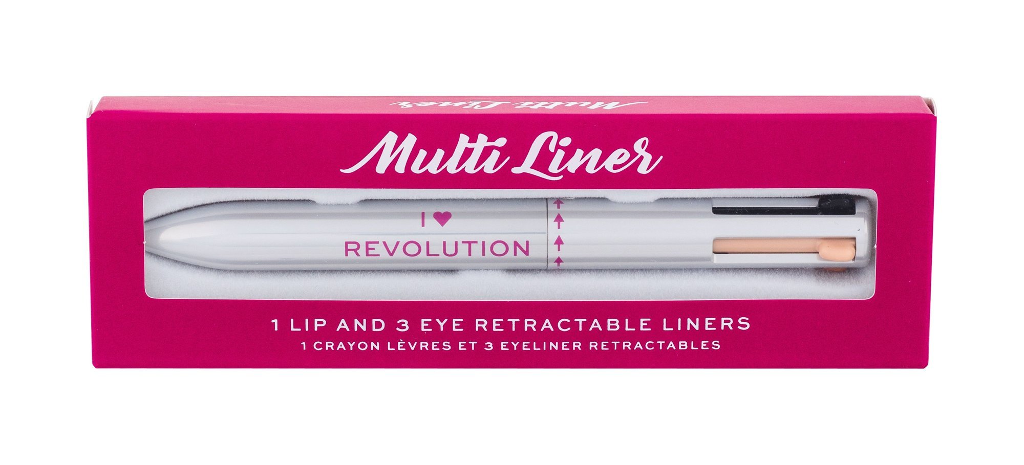 Čtyřbarevná tužka na oči a rty **Makeup Revolution London I Heart Revolution Multi Liner.** Praktická tužka se třemi odstíny pro oči a jedním odstínem pro rty. Balení je ideální na cesty, kdy se nemusíte složitě rozhodovat, který odstín si s sebou vezmete. Dodejte svým očím a rtům krásnou barvu s tužkou na oči a rty 4v1 I Heart Revolution Multi Liner. **Poznámka**: *Vyobrazený odstín může být spíše orientační, záleží na nastavení barev Vašeho monitoru.*