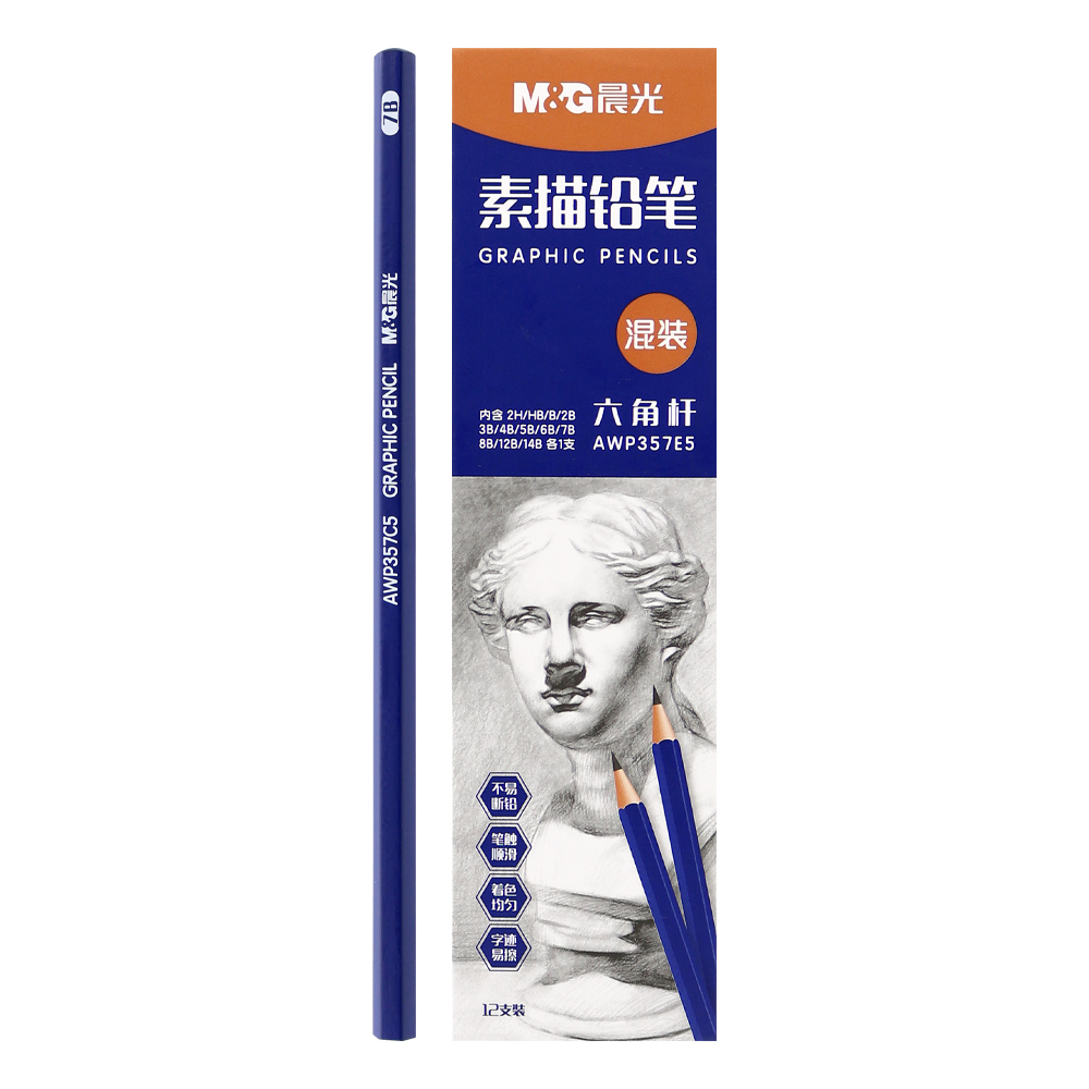 Tužky M&G Graphic všechny tvrdosti od 2H po 14B - sada 12 ks
