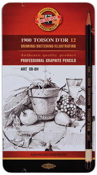 Ołówki 1900 zestaw 8B-8H 12 szt. w pud. metal. 1902, Koh-I-Noor