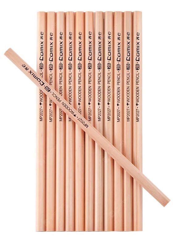 Grafitová tužka 2B Comix MP2027 šestihranná grafitová tužka z přírodního dřeva - tvrdost 2B. Vysoce odolná grafitová tužka nejvyšší kvality pro umělecké kreslení, psaní i pro technické rýsování. Šestihranné přírodní lakované tělo má průměr 7.1 mm, jádro (tuha) má průměr 2 - 2,5 mm, délka tužky činí 175 mm. Tužky dodáváme jednotlivě nebo v sadách podle způsobu použití.