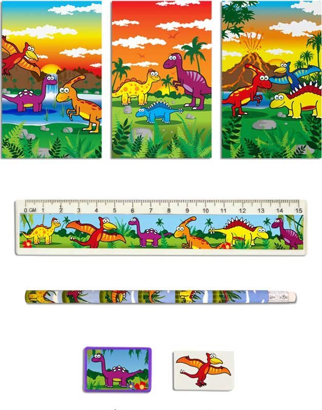 Oživte psaní s motivem dinosaurů! Tato barevná psací souprava přinese do každodenního psaní radost a inspiraci zejména dětem, které milují prehistorická zvířata.