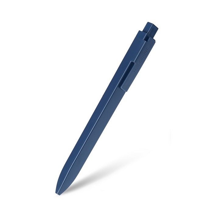 Lehká modrá propisovací tužka z ABS plastu. Je vybavena klipem, který je možný připnout k zápisníkům Moleskine. Propiska je hranatá, má černou vyměnitelnou náplň.