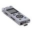 na microSD paměťovou kartu. Maximální délka záznamu je až 123 hodin. Nahrávání probíhá ve dvou volitelných formátech PCM nebo MP3, režim zoom mikrofon umožňuje záznam zvuku na