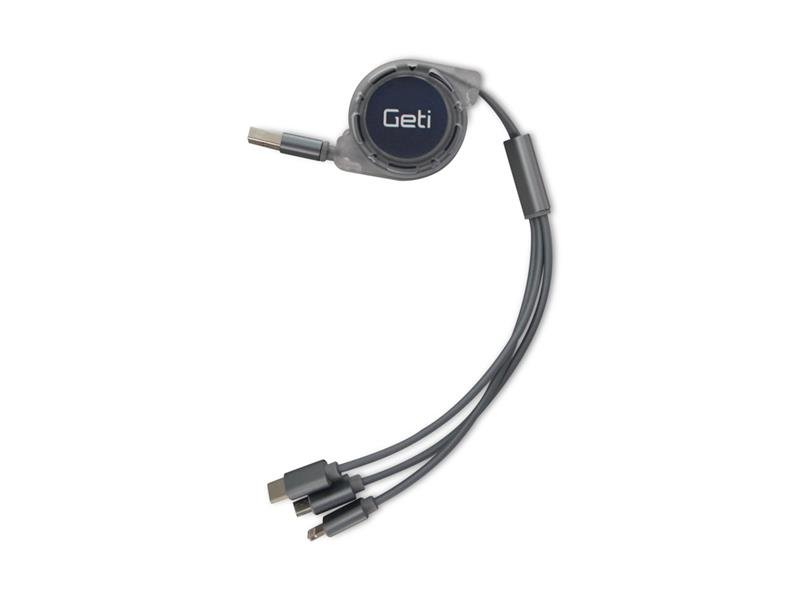Kabel Geti GCU 04 USB 3v1 stříbrný samonavíjecí