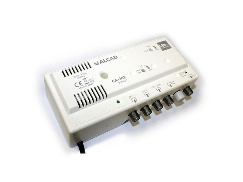 Anténní zesilovač ALCAD CA-361, 1xUHF+1xFM/VHF BIII, 2x výstup, filtr 5G, domovní